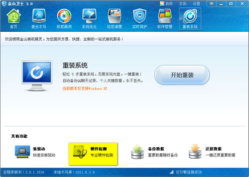 ⑴.首先下载金山卫士,打开卫士主界面中“重装系统”标签,