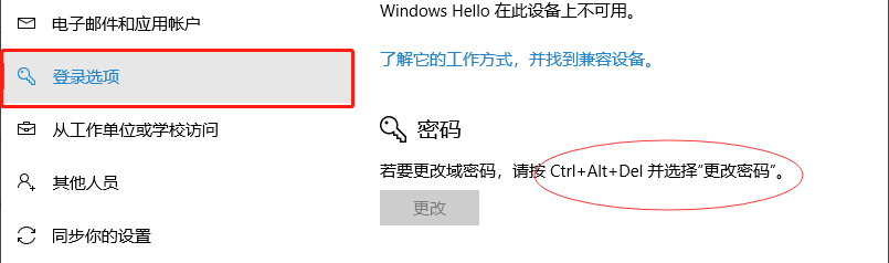 3、接着在界面中,选择登录选项,之后则可看到右侧更改密码的提示。