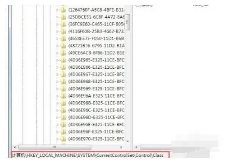 2.进入注册表编辑器界面找到【HKEY_LOCAL_MACHINE\SYSTEM\CurrentControlSet\Control\Class】项。