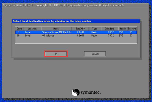 12、接着点击需要还原系统的物理磁盘,选择完成后点击ok按钮。