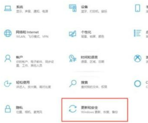 2.Windows 设置(Win+i)窗口中,点击更新和安全(Windows更新、恢复、备份)