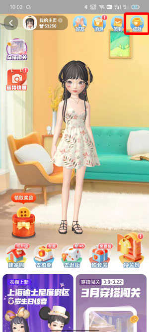 3、在淘宝人生的右上角,找到并点击成就进入淘宝成就系统;