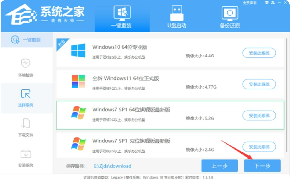 3、等待进入界面后,用户可根据提示选择安装Windows7 32位或者Windows7 64位系统,鼠标点击下一步。