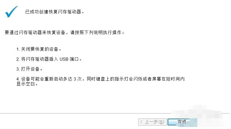 将U盘连接至笔记本,选择“创建恢复USB闪存驱动器”选项,单击“下一步”。