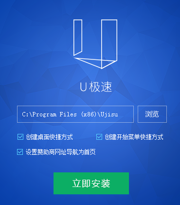 1、首先下载安装U极速u盘启动盘制作工具,解压压缩包,鼠标双击.exe文件,点击【一键安装】或是【自定义安装】。